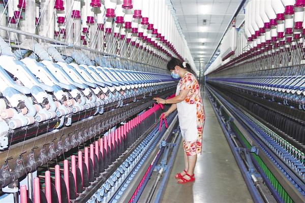 近年来,太康持续实施技术改造项目,通过为老旧设备换“芯”升级,不仅节省了新建生产线的成本,还提升了设备利用率及生产环节的智能化水平。图为太康县银鑫棉业有限责任公司生产车间内,纺织工人在升级后的细纱机前作业。