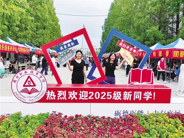 9月6日,周口职业技术学院2025级新生在迎新处打卡留念。9月6日至9月7日,是该学院2025级新生入学报到的日子,来自全国各地的新生怀揣着对大学生活的期待与憧憬,陆续踏入校园,开启崭新的求学之旅。迎新现场,工作人员与志愿者忙前忙后,为新生指引报到流程、主动帮忙搬运行李、细致讲解入学政策……针对家庭经济困难的新生,该学院特别开通“绿色通道”,为新生顺利入学、安心就学提供保障。记者 刘华志 摄