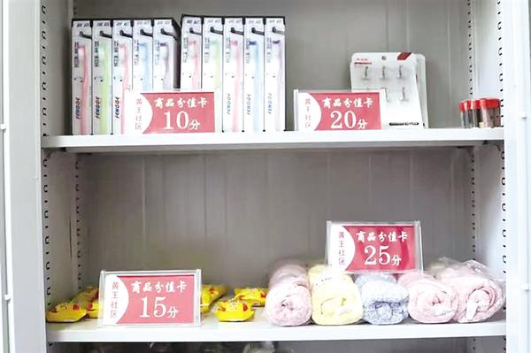 黄王社区居民可在“文明积分超市”兑换生活用品。