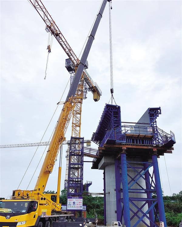 现场管理组组长阮凯说:“截至今年8月底,完成桩基施工。当前重点推进的是特大桥的两个零号块。它们作为连续梁的墩身,分别对应的是45号桥墩和46号桥墩。46号桥墩正在进行底板和腹板绑扎,45号桥墩在进行模板安装。这两个墩身的施工进度直接关系着整个铁路专用线的推进。按计划,特大桥将于明年2月合龙,6月启动架梁。”