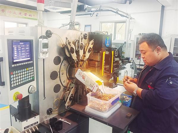 10月7日,位于安岭镇的河南银点电接触材料科技有限公司生产车间内,工人全神贯注地检测刚下线的电器开关配件。近年来,该镇大力实施项目支撑、强镇富民战略,推动产业发展不断取得新突破,让这座千年古镇焕发出新的时代光彩。 记者 侯俊豫 摄