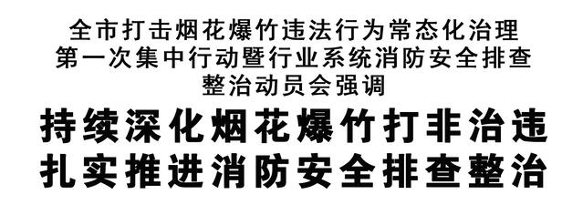 会议指出,安全重于泰山。各级各部门要准确把握我市当前烟花爆竹和消防安全的严峻形势,深刻汲取事故惨痛教训,时刻绷紧思想之弦,紧盯系统性风险和机制性问题,持续深化烟花爆竹打非工作,扎实推进消防安全排查整治,最大限度防范遏制各类事故发生,全力保障人民群众生命财产安全和社会大局稳定。