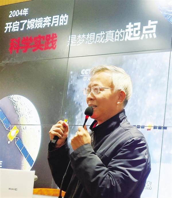 10月15日,西安卫星测控中心原副主任朱民才少将研究员为扶沟县实验中学学生作《‘嫦娥’探月成功密码》主题科普报告。活动现场气氛热烈,他通过一件件珍贵的图文和影像资料,讲解航天器轨道设计及控制知识,再现中国航天奋斗历程。记者 金月全 摄