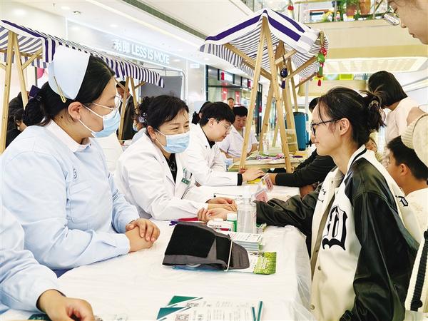 本报讯 中医义诊区前市民排起长队,养生茶摊飘着淡淡药茶香,心理咨询区专家为市民“拨开云雾”……10月17日至10月19日,周口市第六人民医院(周口市精神卫生中心)在开元万达广场举办了“健康市集”活动。活动中,医生将专业医疗知识转化为好玩、好看、好学的互动体验,让市民在轻松氛围中学习健康知识。