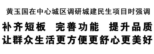 调研中,黄玉国强调,城建民生项目是推动城市高质量发展、创造高品质生活的重要抓手。要深刻把握“五个转变、五个更加注重”重要原则,顺应城市发展规律,尊重人民群众意愿,坚持系统谋划,聚焦民生关切,着力补齐城市基础设施、公共服务等领域短板弱项;坚持创新思路,积极主动作为,着力破解制约项目建设的堵点难点;坚持量力而行,分清轻重缓急,务实高效推进项目建设,确保干一件成一件,不断增强人民群众获得感、幸福感和安全感。