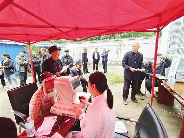 “听说今天有市里的眼科专家来,我一大早就在这等着了!”活动现场,苏阁村村委会院内人头攒动,不少村民早早前来排队等候。专家们耐心接诊,为村民进行视力检查、眼底疾病筛查,细致解答各类眼部问题,并为患有白内障、青光眼、角膜炎等眼疾的村民制订个性化治疗方案。