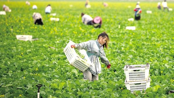 11月11日,50余名来自贵州省安顺市的务工人员抵达淮阳区曹河乡宛丘农场,对2000余亩菜心进行集中采收。田间地头,大家分工协作,确保新采收的菜心及时装车,发往深圳。