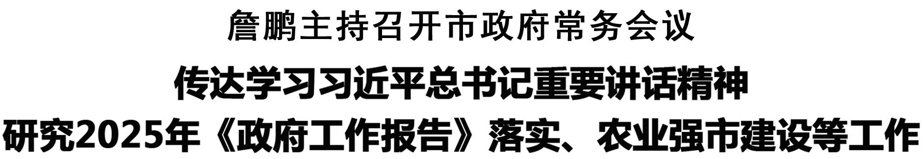 本报讯 (记者 李凤霞) 11月14日,市长詹鹏主持召开市政府常务会议,传达学习习近平总书记在广东考察时的重要讲话精神,以及听取海南自由贸易港建设工作汇报时的重要讲话精神,研究2025年《政府工作报告》落实、农业强市建设等工作。秦胜军、梁建松、孔阳、朱向阳、张建党、程若光、王富生、王文峰出席会议。