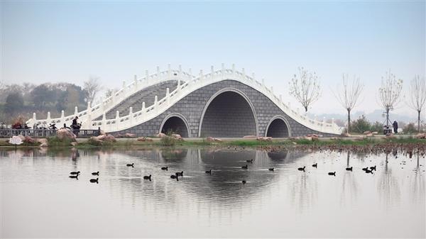 11月16日,在淮阳龙湖国家湿地公园,一群国家二级保护动物白骨顶鸡在此集结。它们时而逐水游弋、低头觅食,时而舒展羽翼、振翅翻飞,与澄澈湖水、玲珑小桥相映成趣,勾勒出一幅灵动鲜活的生态画卷。