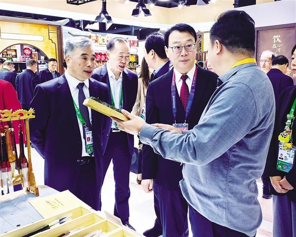 在汝阳刘毛笔展台前,传承人正向参会嘉宾介绍毛笔制作技艺。11月5日至10日,第八届中国国际进口博览会在上海隆重举行。来自我省的多家老字号、非遗项目集中亮相,传播大美河南的文化内涵。记者 张志新 摄