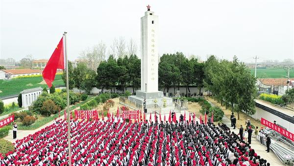学生走进扶沟县塔湾烈士陵园,参加红色研学活动。