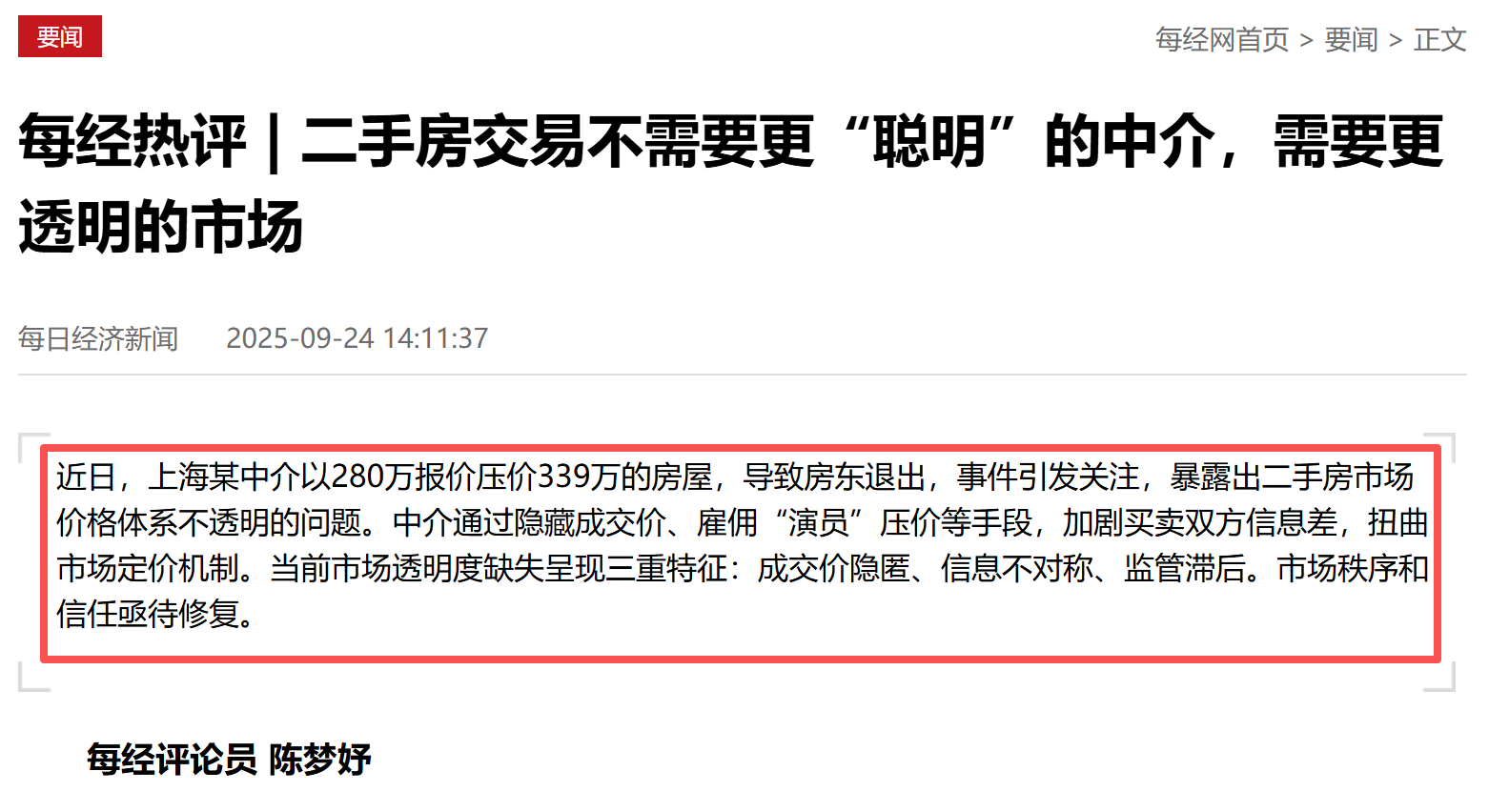 这荒诞一幕,暴露出二手房市场价格体系系统性不透明的大危机。部分中介打着“维护市场稳定”的旗号,隐藏成交价、雇“演员”压价,把买卖双方的信息差变成了一场不对等的“权力游戏”。