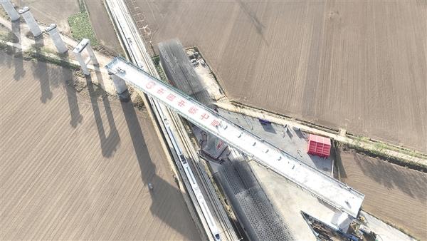 成功转体后的“巨梁”飞跨郑阜高铁线路。