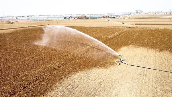 12月1日,在市城乡一体化示范区许湾街道蒋桥村,村民们正在灌溉麦田,为小麦越冬储备水分,确保苗情稳健。