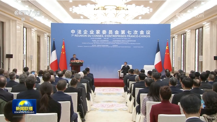 12月4日中午,国家主席习近平在北京同法国总统马克龙共同出席中法企业家委员会第七次会议闭幕式并致辞。