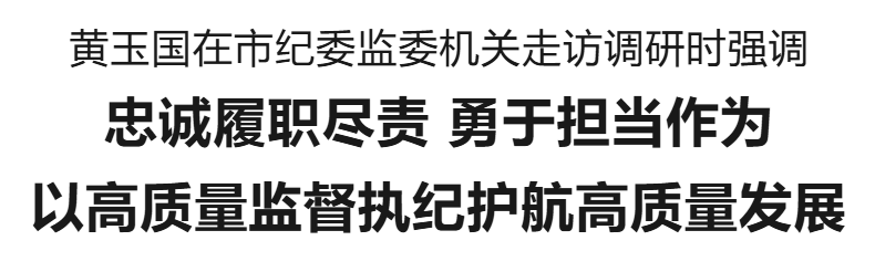 本报讯(记者 王艳) 12月5日,市委书记黄玉国到市纪委监委机关走访调研,强调要深入学习贯彻习近平总书记关于党的自我革命的重要思想和在河南考察时重要讲话精神,忠诚履职尽责,勇于担当作为,不断推动全面从严治党、党风廉政建设和反腐败斗争向纵深发展,以高质量监督执纪护航高质量发展。