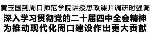 本报讯 (记者 王艳 刘昂) 12月19日,市委书记黄玉国到周口师范学院为师生代表讲授思政课,宣讲党的二十届四中全会精神,并到教学科研一线调研。