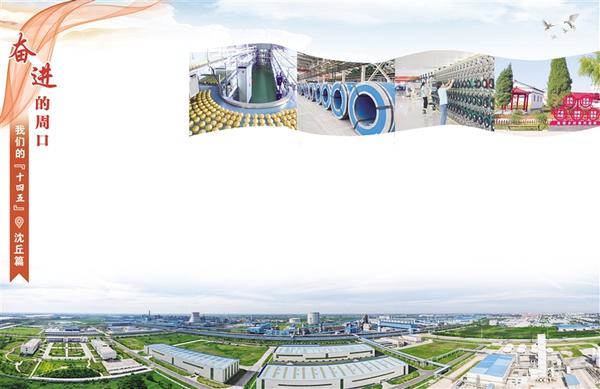 沈丘县以钢铁产业为龙头,围绕千万吨钢产量、千亿元销售收入“双千”目标,积极融入全省“1+3+5”钢铁产业发展格局,规划建设占地10平方公里的钢铁新城,全力强产业、育主体、夯平台,推动钢铁产业延链、补链、强链。2022年12月,周钢专用码头建成投用;2023年12月,周钢铁路专用线通车;2024年10月,周钢二期宽厚板项目热试;2025年1月,周钢二期宽厚板5300毫米轧机试车成功,创造了全球“宽厚板”之最;2025年6月,“5.6米+5.5米双超宽机架”宽厚板生产线全线贯通,再次创造“双超宽机架”世界之最,既夯实了钢铁产业发展基础,又为钢铁配套产业发展提供了广阔的发展空间。