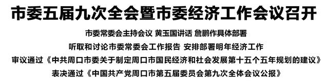 本报讯 (记者 王艳 李凤霞 王晨) 12月28日,中国共产党周口市第五届委员会第九次全体会议暨市委经济工作会议召开。