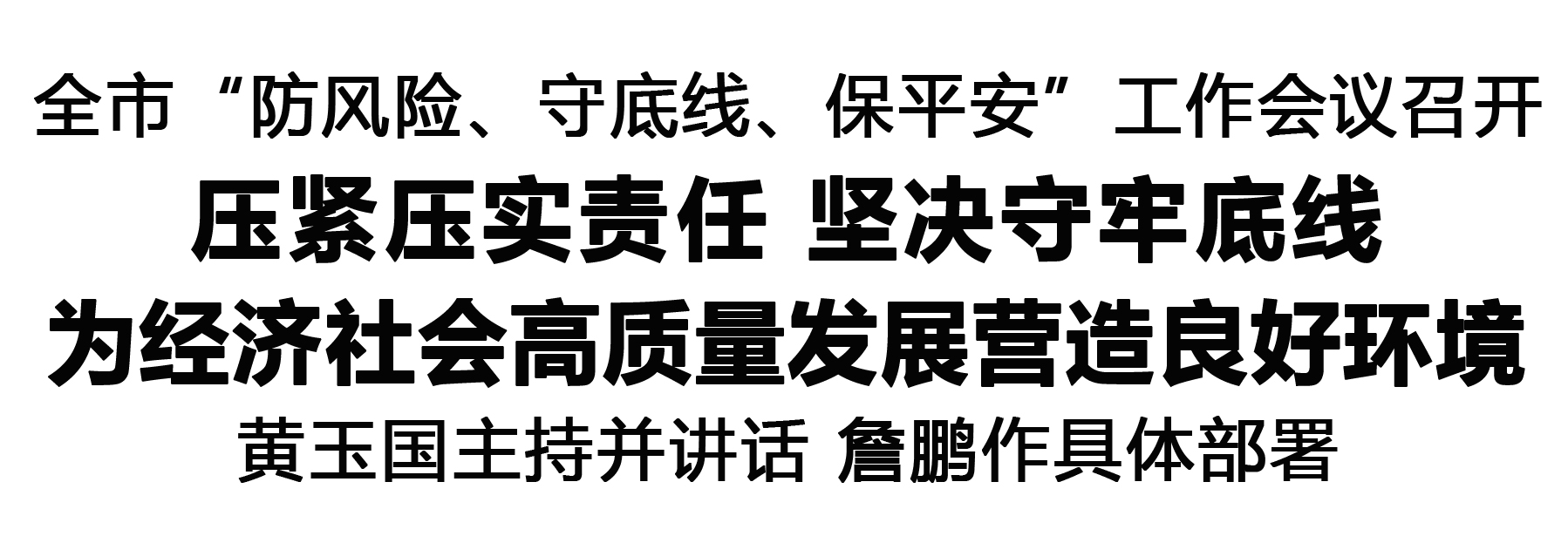 本报讯 (记者 王艳) 2025年12月31日,全市“防风险、守底线、保平安”工作会议召开,专题研究部署岁末年初重点领域安全稳定工作,释放从开头抓紧抓实、保持高压态势的鲜明信号,推动全市广大党员干部思想上高度重视、行动上高度自觉,有效防范化解各类风险,牢牢守住底线红线,为全市经济社会高质量发展营造良好环境。市委书记黄玉国主持会议并讲话。市长詹鹏作具体部署。
