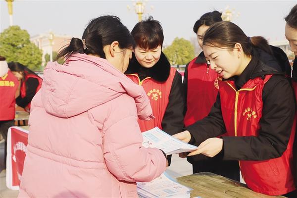 郸城县人民法院普法志愿者向群众讲解法律知识。