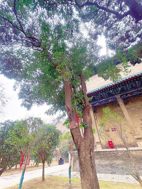 青砖黛瓦映虬枝,古木参天伴古刹。坐落于周口的关帝庙(又名山陕会馆),始建于清康熙三十二年(距今已300多年),历时159年落成,是豫东地区保存完好的清代建筑群。庙内不仅有精美的木雕、石雕与铁旗杆诉说着往昔岁月,还有一群“活文物”静静矗立——那些历经百年风雨的古树名木,与近年新植的金桂、腊梅等树木相映成趣,在枝繁叶茂间编织出时光的经纬,承载着城市的文化记忆。走近这片树群,探寻年轮里的故事,便读懂了关帝庙一半的沧桑与生机。