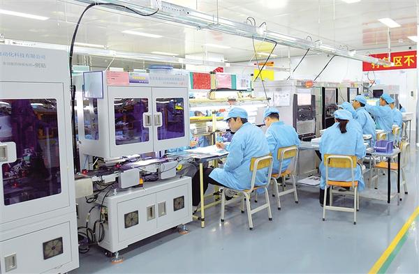 周口耕德电子是华为等知名企业智能零部件关键供应商。据了解,耕德电子每年投入研发经费3000多万元,目前拥有各项专利技术100多项,先后获得“全国就业先进企业”“河南省制造业头雁企业”等荣誉称号。图为1月16日,该公司工人在生产车间娴熟地操作着生产设备。记者 王映 摄影