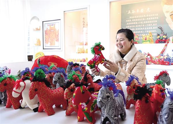 1月18日,非遗传承人张怀霞在自己的非遗工坊缝制布艺马玩偶。最近一段时间,张怀霞按布老虎制作工艺,创新设计出“布韵天马”生肖玩偶系列作品,一经推出,即受热宠。记者 杜欣 通讯员 袁东升 摄影