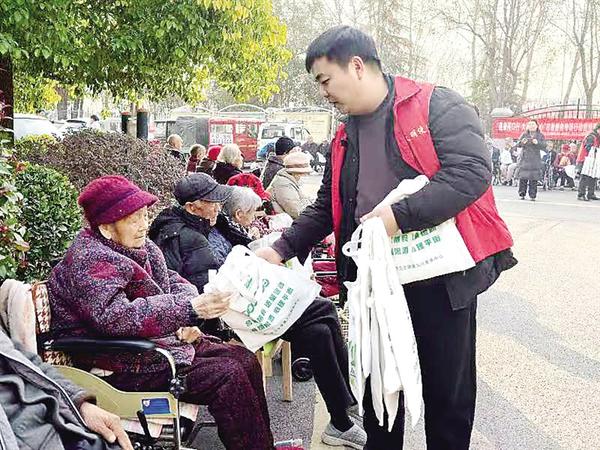 在文艺表演的同时,周口市第二人民医院医护人员为老人们提供健康咨询、身体检查,并为他们耐心答疑解惑。志愿者们还向现场老人发放手提袋、毛巾及健康手册等物品。