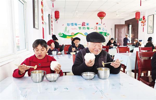本报讯 1月25日,冬日的暖阳透过郸城县汲冢镇敬老院餐厅的玻璃窗,洒在餐厅“珍惜每一粒米 节约每一滴水”的标语上。70岁的郑德喜捧着刚蒸好的白面馒头,端着小鸡炖蘑菇,笑着给身旁的丁爱玲夹了一筷子菜,热气腾腾的碗里,映着两人满是皱纹却笑意盈盈的脸——这对在敬老院喜结连理的老人,正用最朴素的烟火气,诠释着“老来有伴”的幸福。