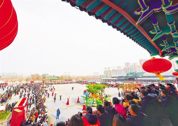 关帝庙文化广场人声鼎沸,氛围热烈。 记者 徐启峰 摄