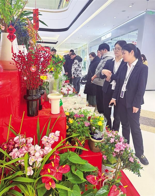春节临近,市民在中心城区各大商超选购年宵花。据了解,商超“一站式”采购实惠便捷,花材亲民、可定制,销量可观。花香伴着烟火气,尽显新春喜悦。 记者 杜营营 摄
