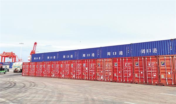 周口港范营作业区集装箱码头。