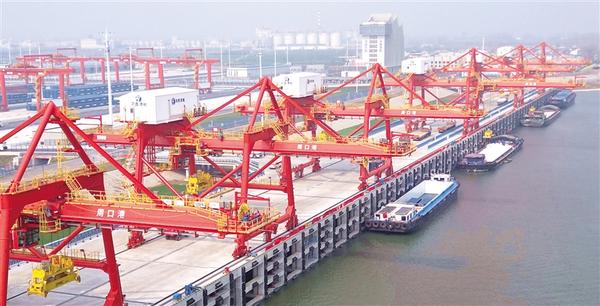 3月9日上午,周口港中心港区中心作业区一片繁忙景象,4个泊位一字排开,装卸集装箱和货物。当下是周口港中心港区中心作业区开港运行迎来的第一个春天,该港作为周口港专业化集装箱水陆联运枢纽型作业区,承担着中原及西北地区集装箱运输,支撑着内陆开放型经济高速发展,并通过港口智能化、多式联运、临港产业融合,助力河南从“经济通道”向“通道经济”转型,打造中部地区对外开放新高地。记者 梁照曾 摄