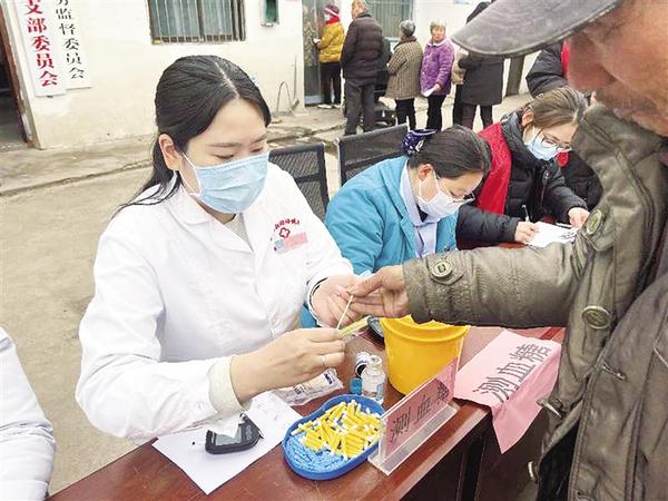 医护人员为村民检测血糖。