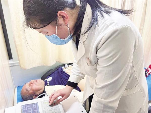 医护人员为村民进行心电图检查。