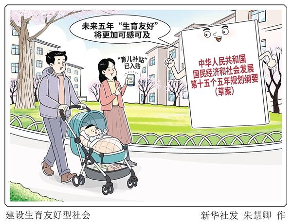 《中华人民共和国国民经济和社会发展第十五个五年规划纲要(草案)》明确提出,建设生育友好型社会。这份文件,对解决人民群众急难愁盼问题给出了更多举措。从这一个“点”放眼全国,生育友好将化为一个个家庭可感可及的温暖实感。 新华社发