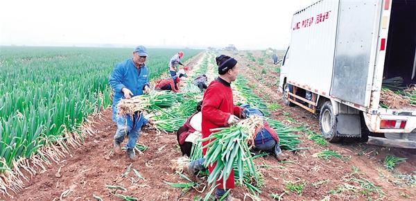 大葱采收现场。刘坤 摄