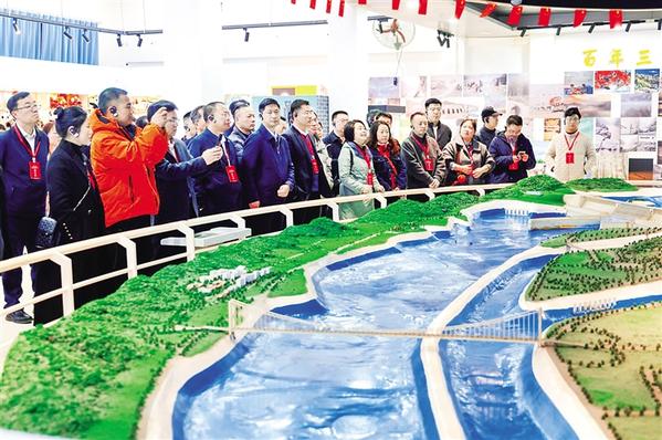 媒体代表参观三峡工程博物馆。