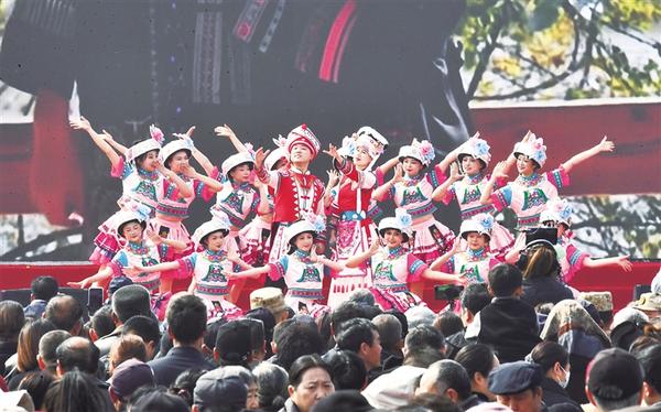 壮族打扁担表演。
