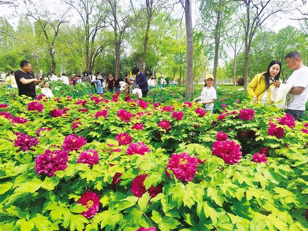 清明小长假期间,周口植物园内牡丹竞相绽放,粉、白、紫、红、黄等各色牡丹娇艳欲滴,吸引市民纷至沓来,在花海中打卡拍照,享受春日休闲时光。
