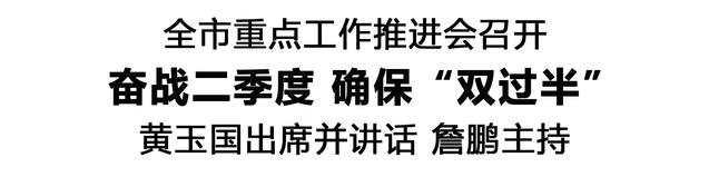 本报讯(记者 王艳 王晨) 4月11日,全市重点工作推进会召开,总结一季度工作成效,分析当前发展形势,安排部署二季度重点任务,动员全市上下进一步统一思想、凝聚共识,继续务实重干、真抓实干,奋战二季度、确保“双过半”,为圆满完成全年目标任务奠定坚实基础。市委书记黄玉国出席并讲话。市长詹鹏主持。