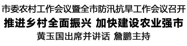 黄玉国指出,作为传统农业大市,“三农”工作是我们的基本盘,也是优势所在、潜力所在、底线所在。要坚决贯彻习近平总书记关于“三农”工作的重要论述和重要指示精神,紧扣省委“四强两高”基本方向,毫不放松抓好农业生产,大力发展现代农业,全面提升农业农村现代化水平,确保整体工作走在全省前列、特色工作走在全国前列。
