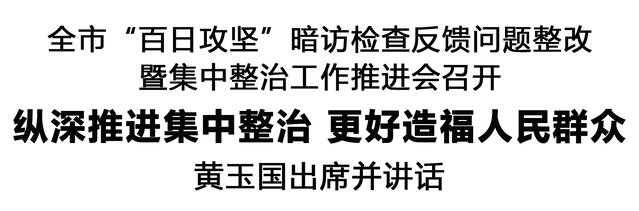 本报讯 (记者 王艳 王晨) 4月17日,全市“百日攻坚”暗访检查反馈问题整改暨集中整治工作推进会召开,深入学习贯彻习近平总书记关于树立和践行正确政绩观的重要论述,以群众身边不正之风和腐败问题集中整治为切入点和突破口,着力解决群众急难愁盼问题,更好造福人民群众,全面提升基层治理水平,以实实在在的工作成效检验树立和践行正确政绩观学习教育的实际成果。市委书记黄玉国出席并讲话。