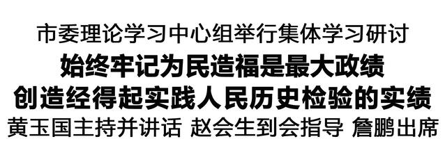 本报讯(记者 王艳 刘昂) 根据市委常委会开展树立和践行正确政绩观学习教育工作安排,4月20日,市委理论学习中心组围绕“政绩为谁而树”开展集体学习研讨,深入学习贯彻习近平总书记关于树立和践行正确政绩观的重要论述,示范带动全市党员干部深刻领会“为民造福是最大政绩”的核心要义,真正把以人民为中心的发展思想贯穿于干事创业全过程,不断创造经得起实践、人民、历史检验的实绩。市委书记黄玉国主持并讲话。省委第三督导组组长赵会生到会指导。市长詹鹏出席。