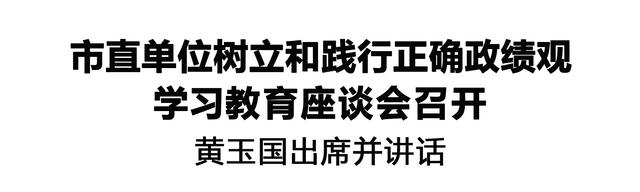 本报讯 (记者 王艳 王晨) 4月21日,市直单位树立和践行正确政绩观学习教育座谈会召开。会议深入学习贯彻习近平总书记关于树立和践行正确政绩观的重要论述,全面落实党中央、省委部署要求,听取部分市直单位学习教育开展情况、部分重点问题整改整治情况汇报,研究部署下步工作,持续传导责任压力,推动学习教育走深走实、见行见效。市委书记黄玉国出席并讲话。省委第三督导组有关同志到会指导。