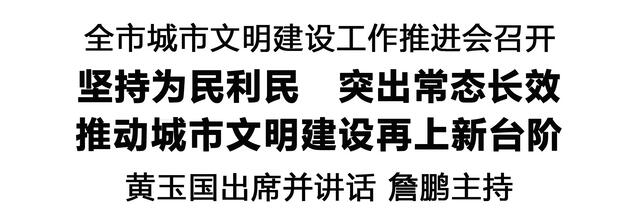 黄玉国强调,要聚焦重点工作,以更实举措推动城市文明建设提质增效。要持续抓好城市建设,加快建强基础设施、完善功能布局、推进城市更新、解决顽瘴痼疾,统筹推进市政设施、园林绿化、便民场地建设,有序推进老旧街区、小区更新改造,持续完善社区基本公共服务设施、便民商业服务设施、公共活动场地,着力提升城市功能品质。要持续抓好环境整治,强化污染防治、卫生整治、交通治理,倡导绿色理念,扎实做好“净化、美化、绿化、亮化”四篇文章,协同推进降碳减污扩绿增长,着力改善城市面貌。要持续抓好城市治理,创新城市治理理念、方式、手段,建强用好全市统一的社会治理平台,深化运用“党建+网格+大数据”治理模式,进一步强化社会治安整体防控,提前排查整治城市内涝等汛期安全隐患,持续提升城市治理精细化、智慧化、安全化水平,着力增强城市安全韧性。要持续抓好文化传承,坚持以文化人、以文惠民、以文润城、以文兴业,大力弘扬和践行社会主义核心价值观,建强用好新时代文明实践阵地,充分发挥博物馆、图书馆等文化设施作用,切实加强历史文化遗产保护管理,持续办好老子元典文化论坛、伏羲文化旅游节等活动,丰富城市精神文化生活,提升城市文化软实力,着力培育城市文明风尚。