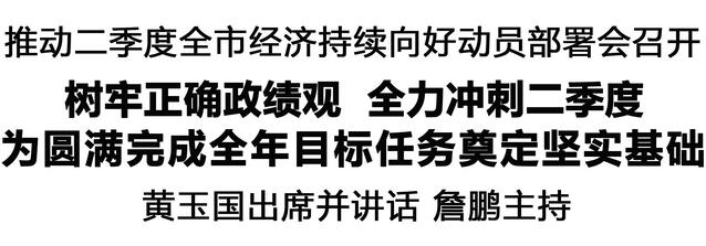 本报讯 (记者 王艳 王晨) 4月28日,推动二季度全市经济持续向好动员部署会召开,落实推动二季度全省经济持续向好动员部署会精神,分析研究当前经济形势和经济工作,引领全市上下牢固树立和践行正确政绩观,认清形势、聚焦问题、攻坚克难,全力冲刺二季度,确保实现“时间过半、任务过半”,为圆满完成全年目标任务奠定坚实基础。市委书记黄玉国出席并讲话。市长詹鹏主持。