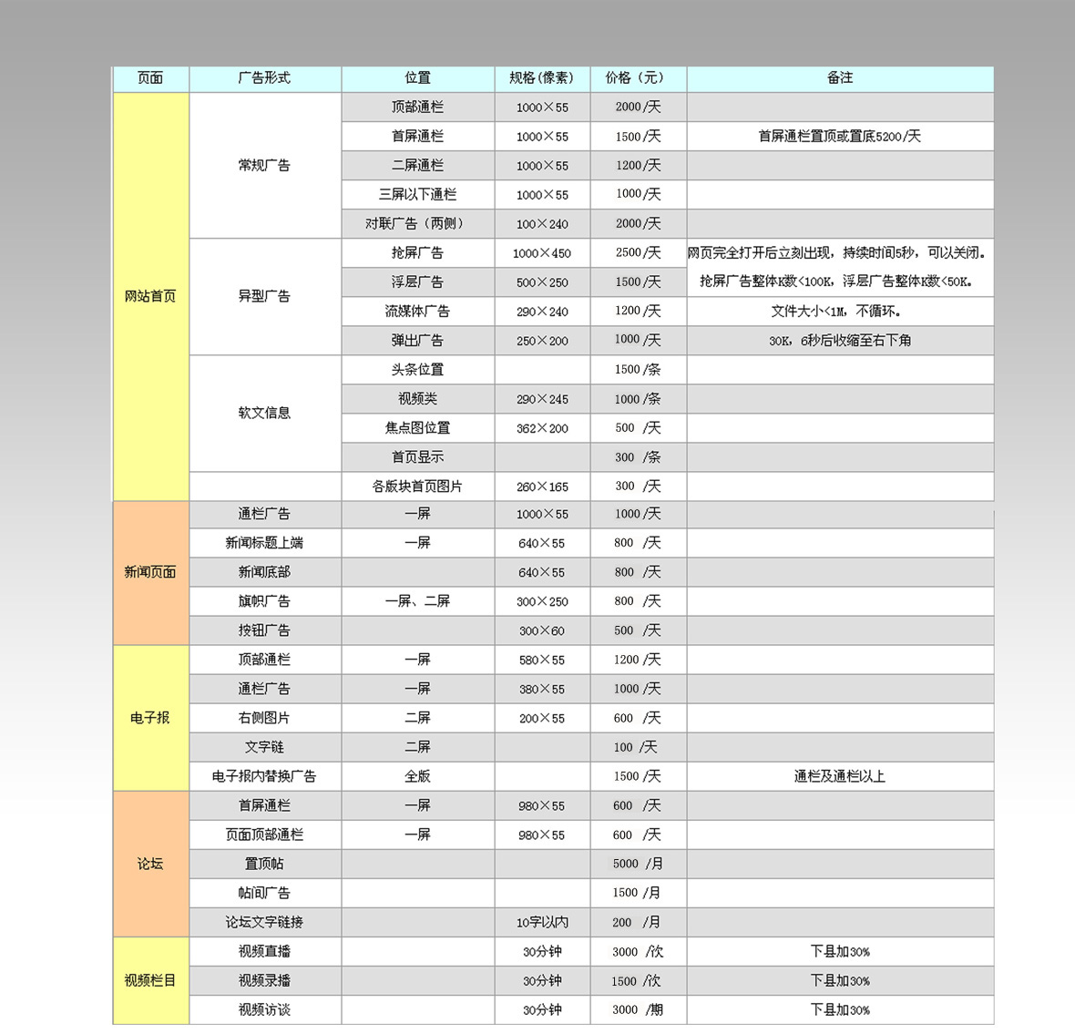 广告形式及价格