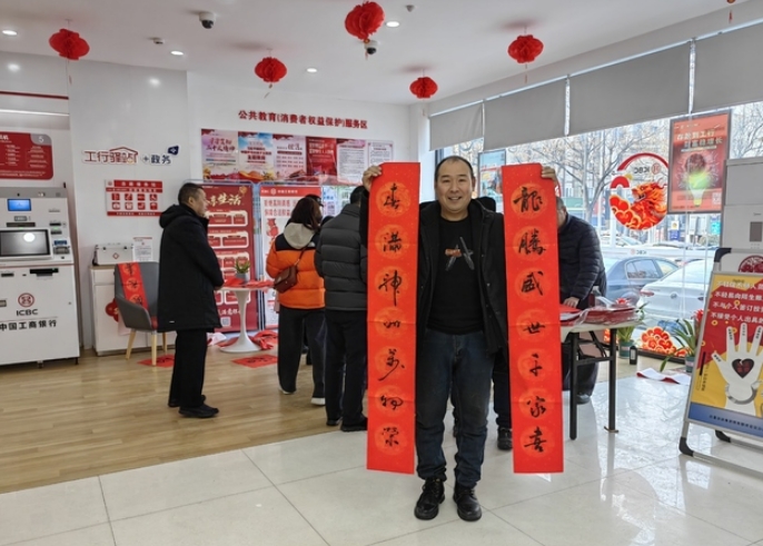 新春佳节来临之际,工行周口分行传承中华民族习俗,积极营造欢乐祥和吉庆的节日氛围,精心组织本行书法家和书法爱好者在营业网点开展“写春联送福字贺新年”活动,为广大群众送上新春美好祝福。